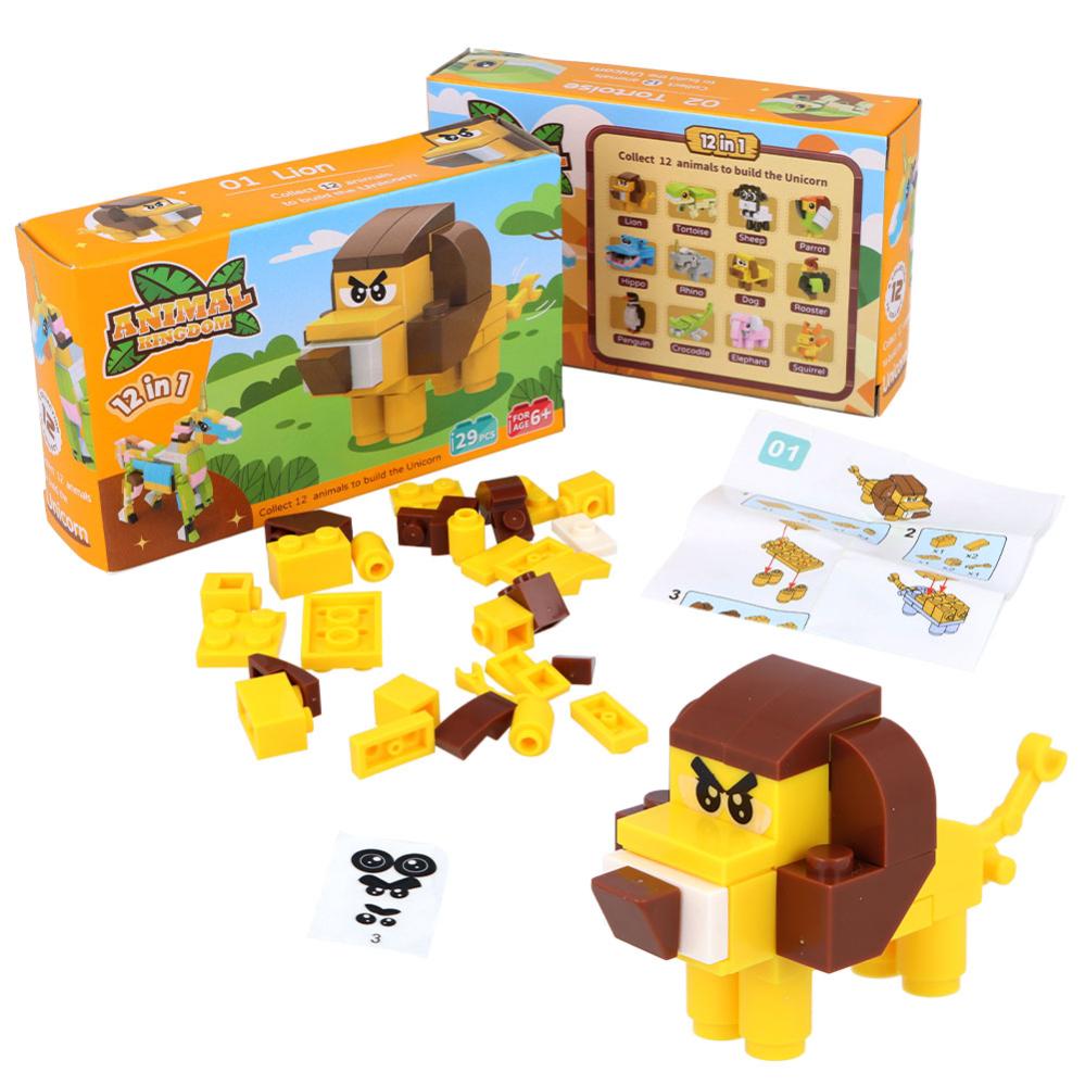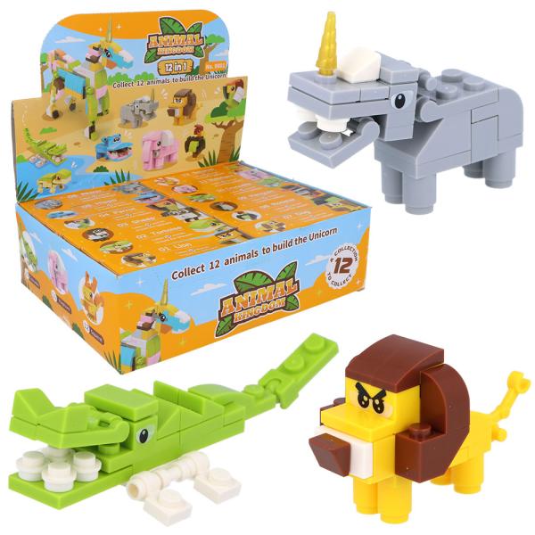 3D-Byggsats Set Djurriket omfattar ett set med 12 st legobyggsatser för att bygga tolv olika djur exempelvis en ekorre, hund, pingvin, lejon, krokodil, elefant och sköldpadda. Samla alla tolv djur så kan du bygga en stor, färgglad enhörning av dem. Byggsatserna säljs i tolv olika varianter men de säljs osorterade och styckvis så det blir en överraskning vilket djur du får. Bygginstruktioner för varje enskilt djur samt för den stora enhörningen finns i förpackningen.