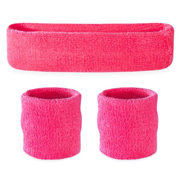 80-tals Svettband Neonrosa innefattar ett paket med neonrosa svettband med stretch till armarna och huvudet. Stretchen gör att svettbanden är bekväma att bära.