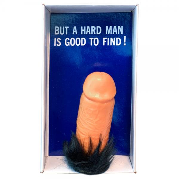 A Good Man Is Hard To Find Skämtpresent innehåller en presentlåda med motiv av en man samt texten "A Good Man Is Hard To Find" på framsidan. Inuti presentlådan gömmer sig en liten snopp och texten "But A Hard Man Is Good To Find". Presentlådan mäter ca 4 x 15 x 9 cm och är tillverkad av papp.