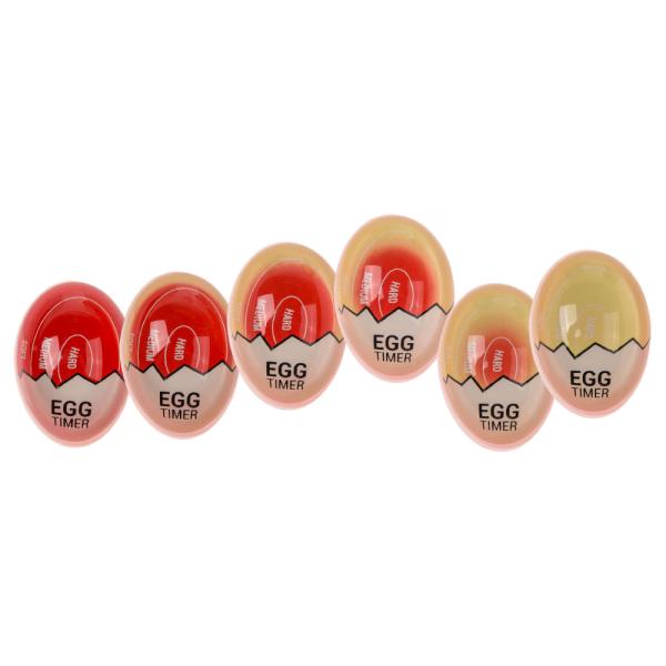 Äggtimer med Färgskiftning består av ett plastägg som avslöjar det kokande äggets hårdhet med hjälp av sin färgskiftande effekt. Ägget mäter ungefär 6 centimeter långt och har en platt undersida.