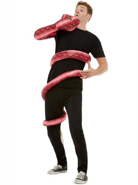 Tänk att du är ute på en safari mitt ute i djungeln för att hitta världens mest exotiska och farligaste djur, och så plötsligt så snubblar du på någonting som känns som en trärot. Du försöker ställa dig upp men känner att den där träroten plötsligt börjat slingra sig runt ditt ben, och till din fasa så får du reda på att det faktiskt var en hungrig anaconda! Med denna roliga ormdräkt så kan du ge av illusionen att ormen ska äta upp dig, eller spana ut ett mer frestande byte.