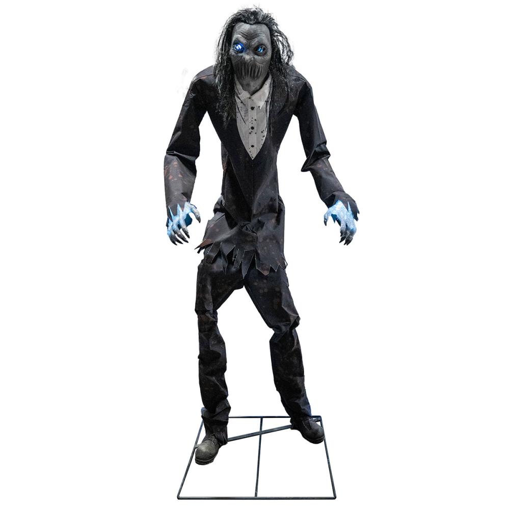 Animerad Kyrkogårdsspöke 230 cm omfattar en Halloween-rekvisita i form av ett kyrkogårdsspöke med inbyggda LED-lampor, ljud och rörelser som kan aktiveras med hjälp av inbyggda ljudsensorer när du till exempel klappar händerna.