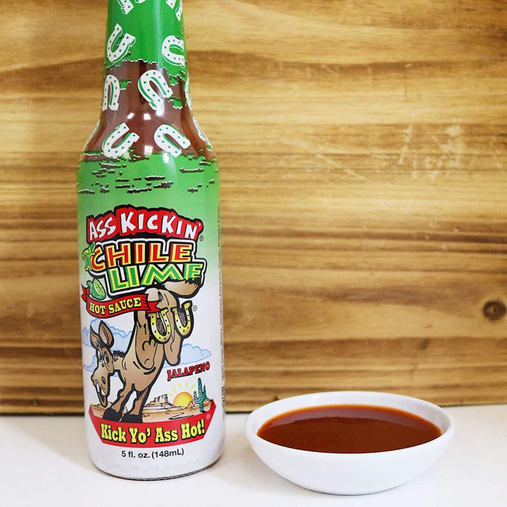 Ass Kickin' Chili Lime Hot Sauce omfattar en flaska med 148 ml hot sauce med lime och chili.