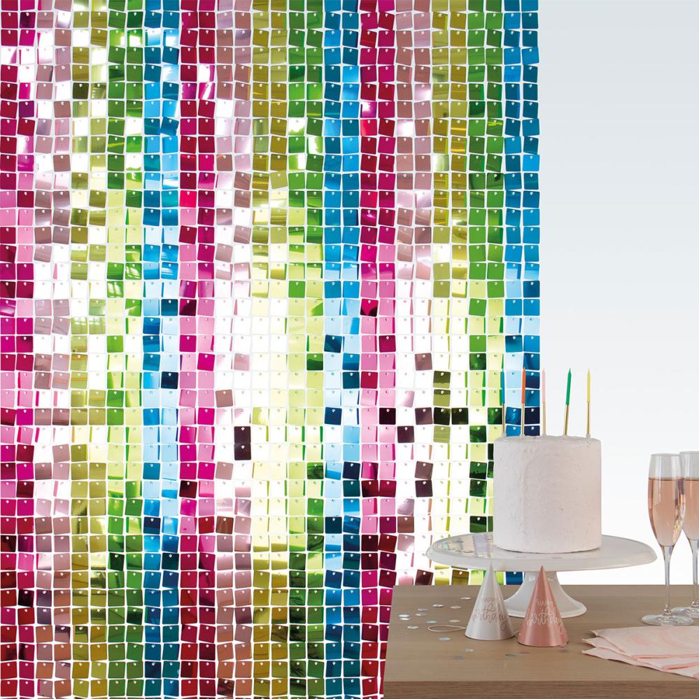 Skapa en glamourös partybakgrund med Backdrop Paljettpanel Northern Lights. De färgstarka panelerna klickas enkelt ihop och blir en sprakande backdropdekoration som lyfter vilken festdekoration som helst.