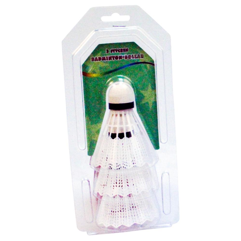 Badmintonbollar består av bollar att spela badminton med. De mäter ungefär 8 centimeter långa och är tillverkade av plast. Säljs i 3-pack.