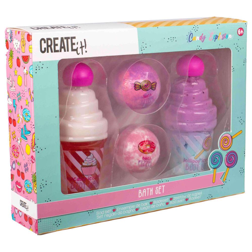 Badset med Doft Glass omfattar ett badset med två badbomber med doft av vanilj eller passionsfrukt, duschtvål med doft av persika och körsbärsblomma samt kroppslotion med doft av jordgubbe och vanilj. Duschtvålen och kroppslotionen levereras i plastflaskor formade som en glass.