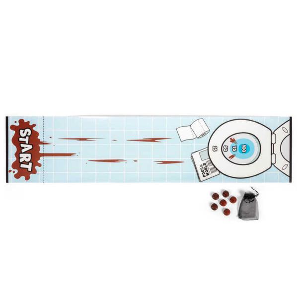 Ett skitroligt sällskapsspel för alla bajsnödiga barn och vuxna! Bajs Curling Spel är ett roligt spel som liknar mini curling på bord, men i ny tappning med bajstema. Här gäller det att slajda spelpjäserna i form av bajskorvar eller snarare bajshögar, ner i toaletten, eller så nära som möjligt. Bred ut ditt curlingspel på ett bord och sikta din bajshög mot toaletten på andra sidan spelplanen, och om möjligt, passa på att få bort andra lagets bajshögar på vägen mot toaletten, men se upp så att du inte ger andra lagets bajshög en skjuts ner i toaletten! Bajs Curling spel är ett superkul brädspel och barnspel för alla spelsugna barn och vuxna, och speciellt för den som tycker att bajs och bajskorvar är extra roligt! Gör plats för detta bordscurling spel, och börja spela detta knasiga curling sällskapsspel och bajsspel!