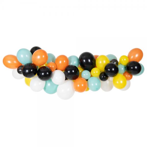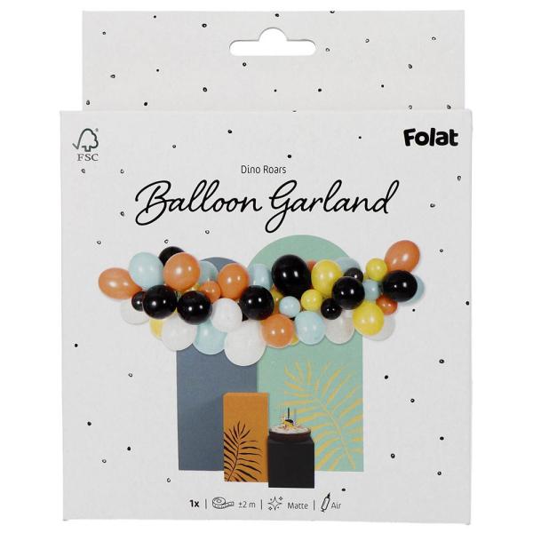 Skapa en festlig atmosfär på ditt barnkalas med denna ballongdekoration. Födelsedagsballonger i fina dino inspirerade färger bildar en livlig ballonggirlang. Latexballonger och ett smidigt genomskinligt band ingår.