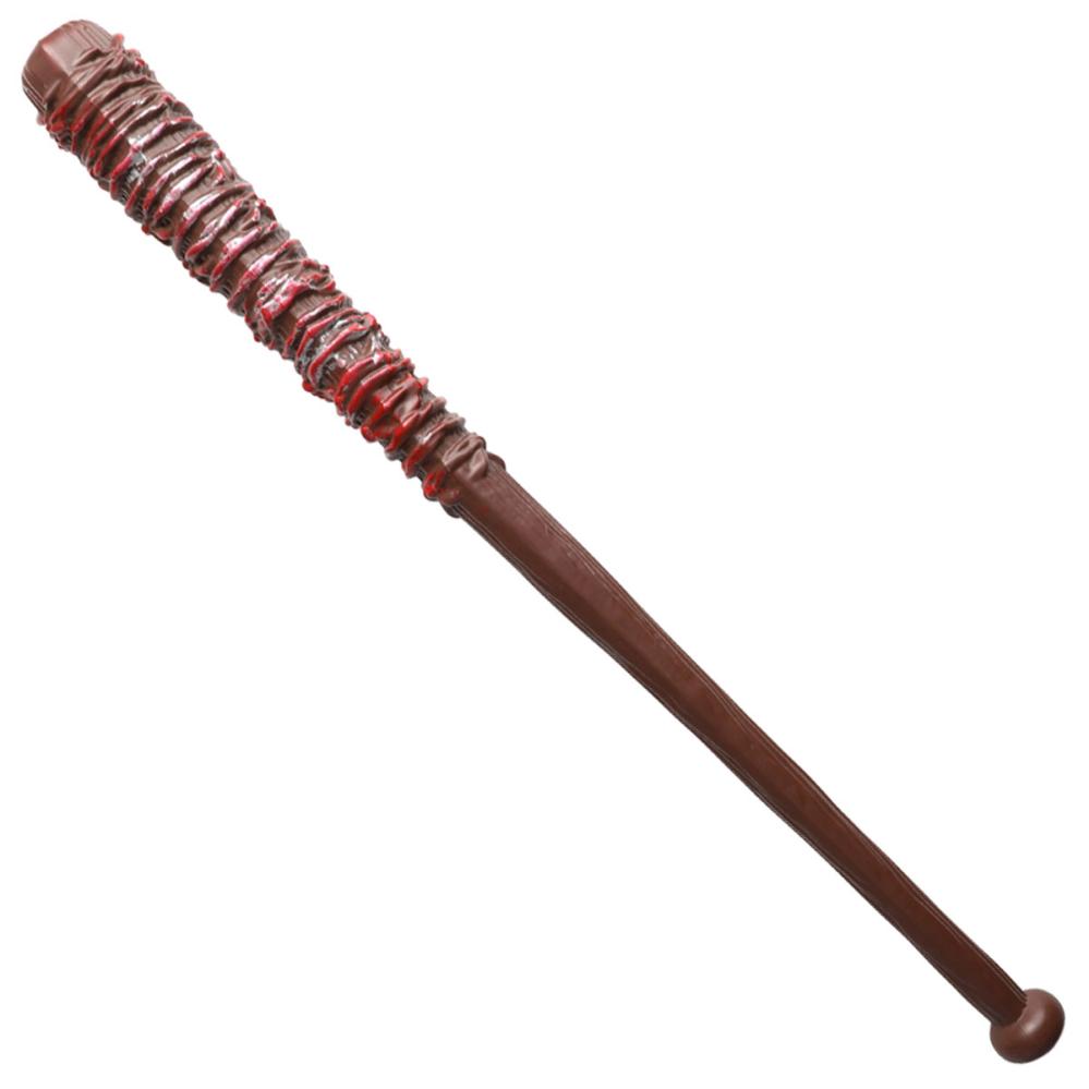 Basebollträ med Taggtråd 61 cm är ett brunt basebollträ i plast med silverfärgat motiv av taggtråd med röda detaljer som liknar blod.