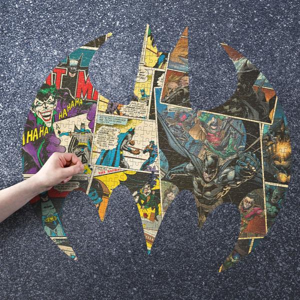 Batman Pussel Fladdermus omfattar ett pussel format som en fladdermus med bilder från serietidningsversionen av Batman från 1940.