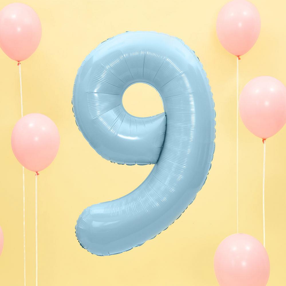 Vill du pynta barnets födelsedag med ballonger i form av siffror så kan du enkelt göra det med hjälp av denna fina sifferballong! Snygg folie-ballong i form av valfri siffra i en fin pastellblå nyans som gör sig riktigt bra till barnkalas. Blås upp ballongsiffran med luft eller helium och pynta med den snyggt tillsammans med dina övriga dekorationer så kan kalaset börja!