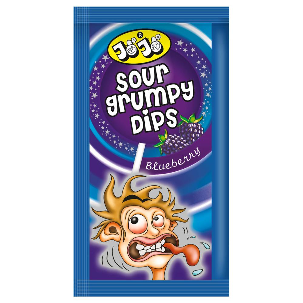 En godisklubba ger fin balans till blåbärsgodis och kompletterar smakbilden. Ett surt pulver med blåbär ger godiset tydlig smak, fungerar som en mjuk dipp och gör det enkelt att doppa under små pauser.