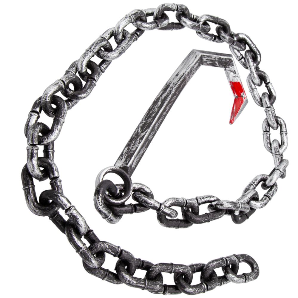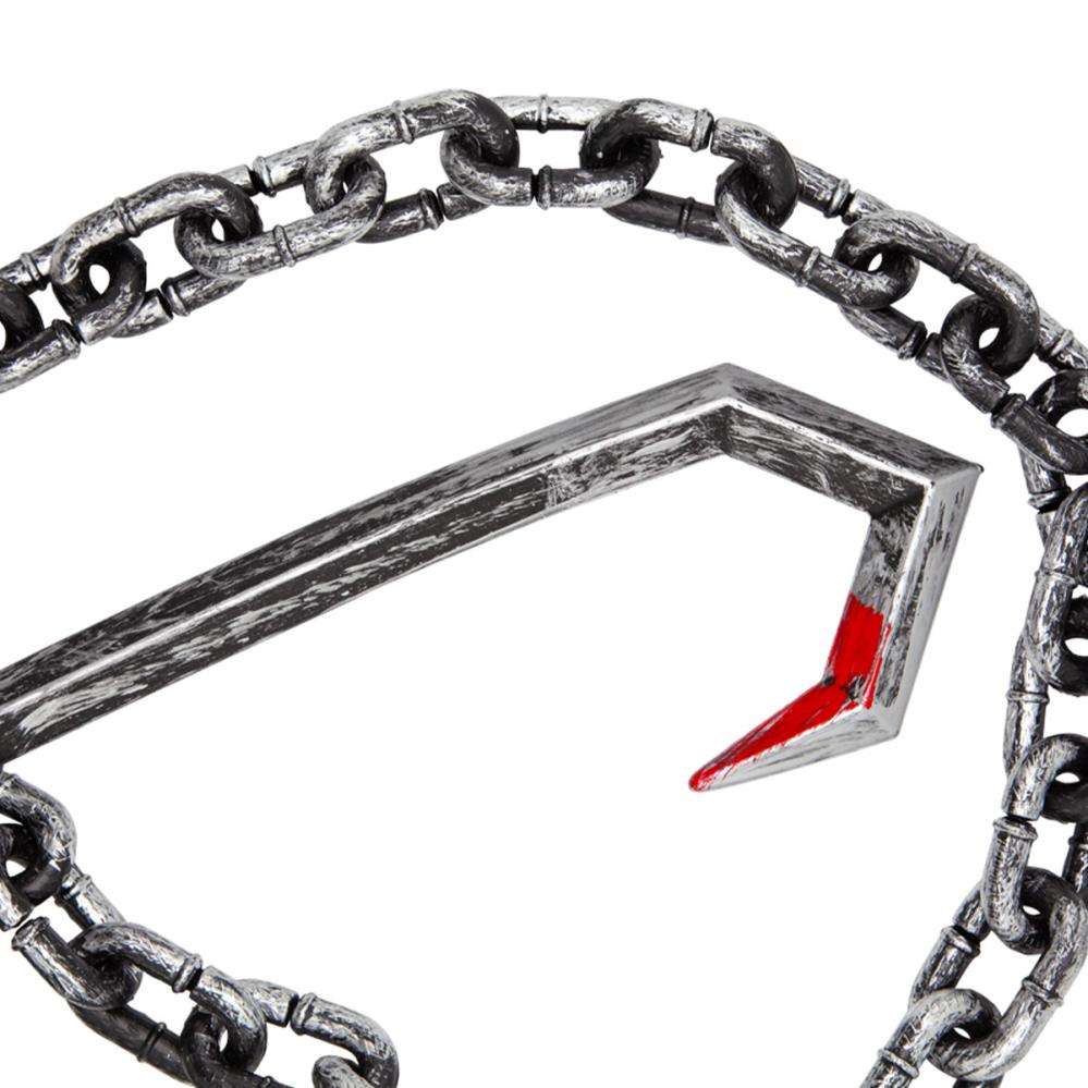 Blodig Köttkrok med Kedja är ett maskeradtillbehör i svart och silver i form av en blodig köttkrok med en kedja.