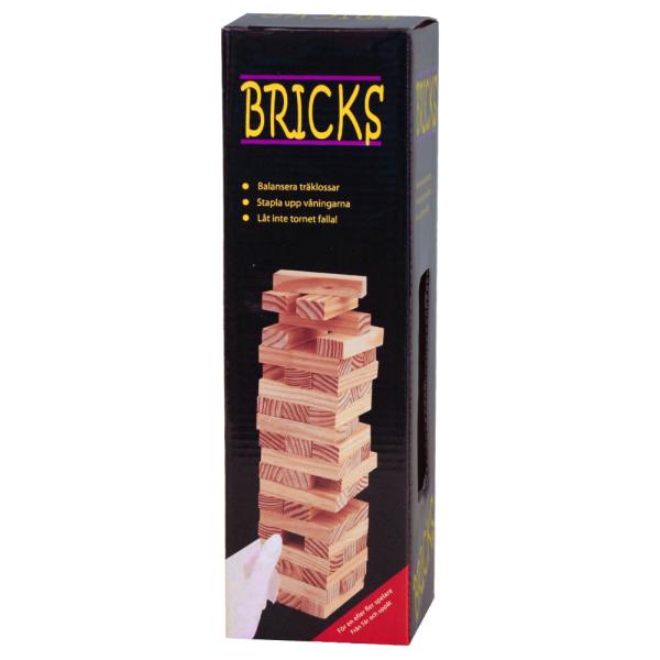 Bricks Stapla Klossar Spel omfattar en spel med klossar som spelas likt det populära spelet jenga. Spelregler finns på förpackningen.