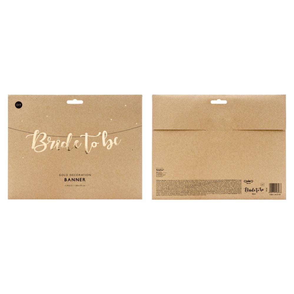 Bride To Be Girlang Guld omfattar en guldig girlang av papp som föreställer texten "Bride To Be" som är ca 19 cm hög samt 80 cm lång. Medföljer även ett 150 cm långt snöre för upphängning.