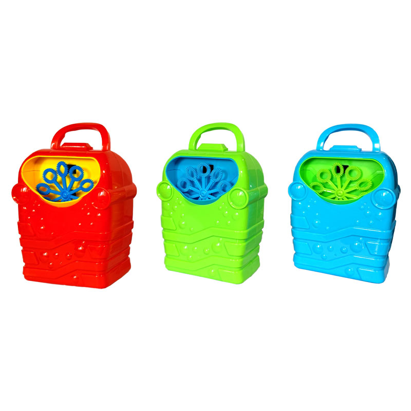Bubble Machine Såpbubbelmaskin omfattar en maskin som blåser ut såpbubblor. En flaska med såpbubbelvätska ingår. Drivs av 3 stycken AA batterier som inte medföljer. Finns i olika färger, vilken du får blir en överraskning. Säljs styckvis.