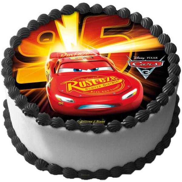 Cars Tårtbild Sockerpasta A består av en tårtbild i sockerpasta med motiv av Cars karaktären Blixten McQueen mot en häftig bakgrund med numret "95". Tårtbilden är färdig att läggas på tårtan direkt ur förpackningen.
