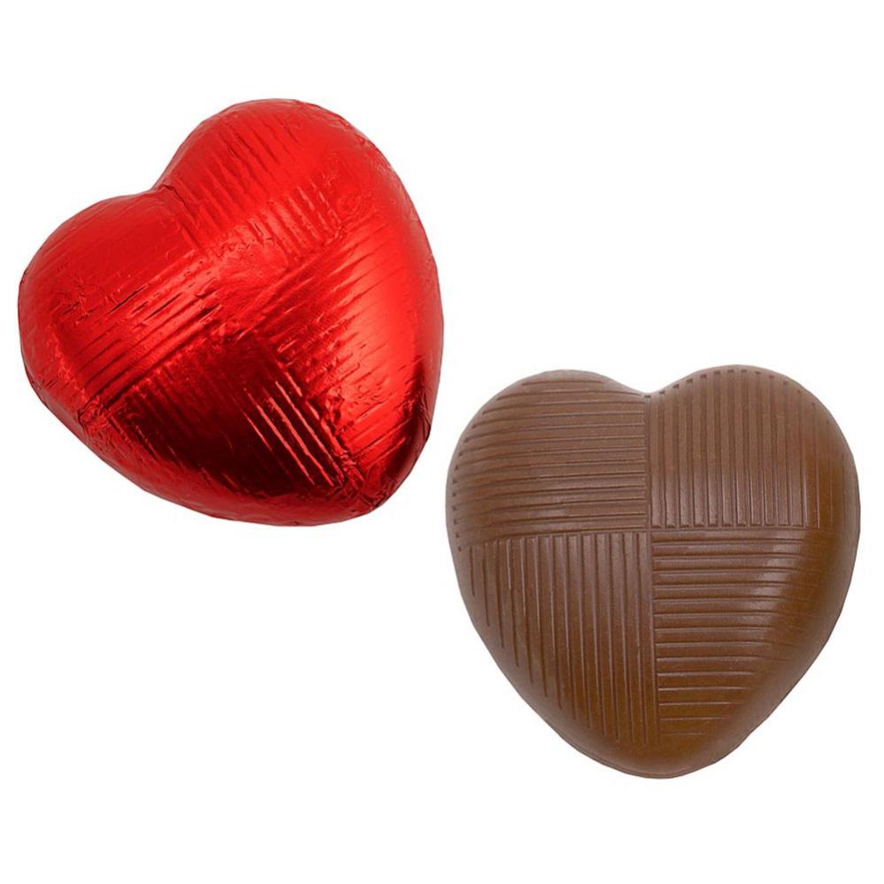 Chokladhjärtan i Röd Folie innehåller högkvalitativ choklad i form av hjärtan som är insvepta i rött folie.