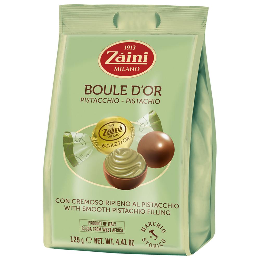 Chokladpraliner Pistage 125g är en påse med 125 gram mjölkchokladpraliner som är fyllda med pistagekräm.