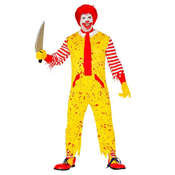 Clownen som alla känner igen med den riktigt mardrömsinjagande twist. Klä ut dig till en riktigt läskig clown med denna clown-dräkt. En läskig clown kostym som blir perfekt för dig som söker en blodig utklädnad till halloween eller maskerad. Matcha gärna med passande peruk och smink för full effekt.