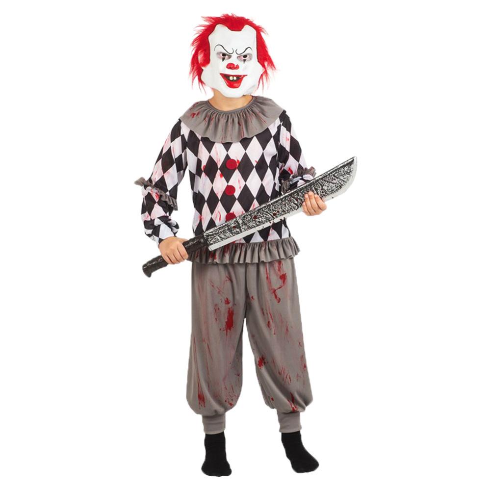 Förvandlas till en blodstänkt barn clown och förbered dig på kusligt Halloween kalas och maskerad party med en läbbig clown-dräkt! Denna spöklika utklädnad passar alla barn som vill vara en läskig clown på ruggig Halloween fest, en perfekt dräkt och kostym för riktigt spooky känsla och nervkittlande stämning.