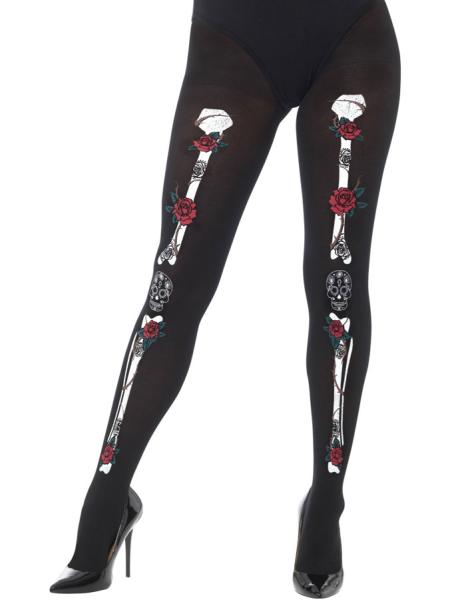 Till Day of the Dead maskeraden blir ett par skelett strumpbyxor en elegant detalj ihop med den mexikanska utklädnaden. Strumpbyxorna representerar inte endast skelett, utan även liv i form av fina rosor som utan tvivel kommer dra åt sig uppmärksamhet vid evenemanget.