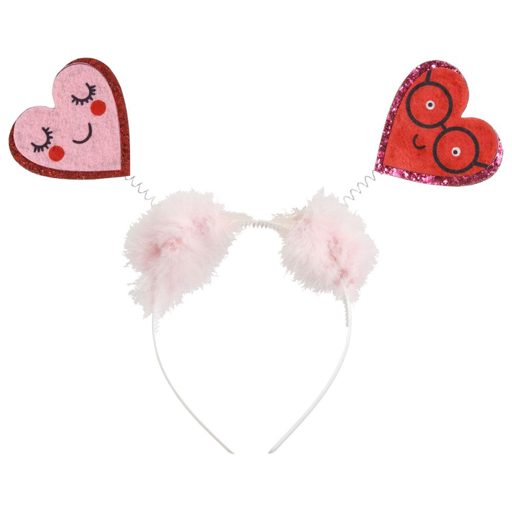 Fira kärlekens dag med ett charmigt Alla hjärtans dag-diadem. Detta hjärtdiadem med rosa fluff och glittriga hjärtan på spiralfjädrar passar perfekt om du söker ett lekfullt diadem till din outfit.