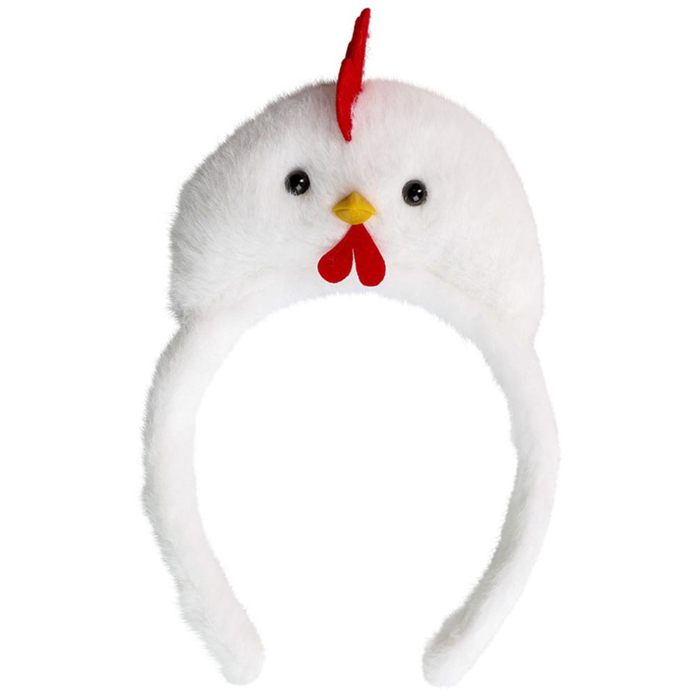 Diadem med Höna Vit är ett fluffigt diadem i vitt med en uppstickande höna.