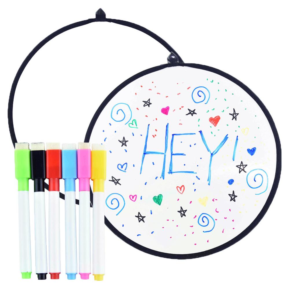 Vill du lära ditt barn att spela dart är en pil-tavla med snälla kardborre bollar perfekt, och inte nog med det, denna dart-tavla har dessutom en whiteboard tavla på ena sidan! Så här kan det alltså både kastas bollar och köras dart-spel på färgglatt dinosaurie motiv, och målas fina mönster eller varför inte en egen pil-tavla med eget poängsystem på whiteboard sidan.