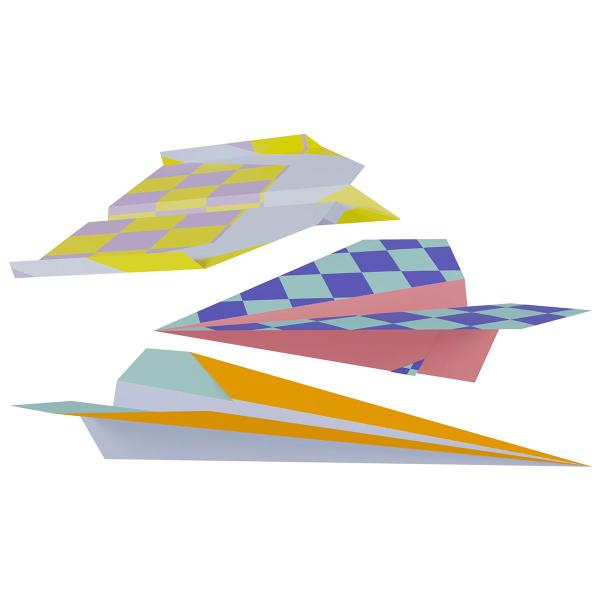 DIY Pappersflygplan Stripetastic 12-pack omfattar ett set med tolv vikpapper för att vika olika typer av pappersflygplan. Varje ark har ett färgglatt tryck på båda sidor och tydliga viklinjer. Det medföljer även ark med tydliga instruktioner för att vika flygplanen.
