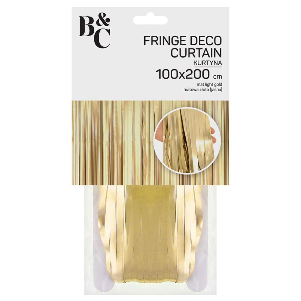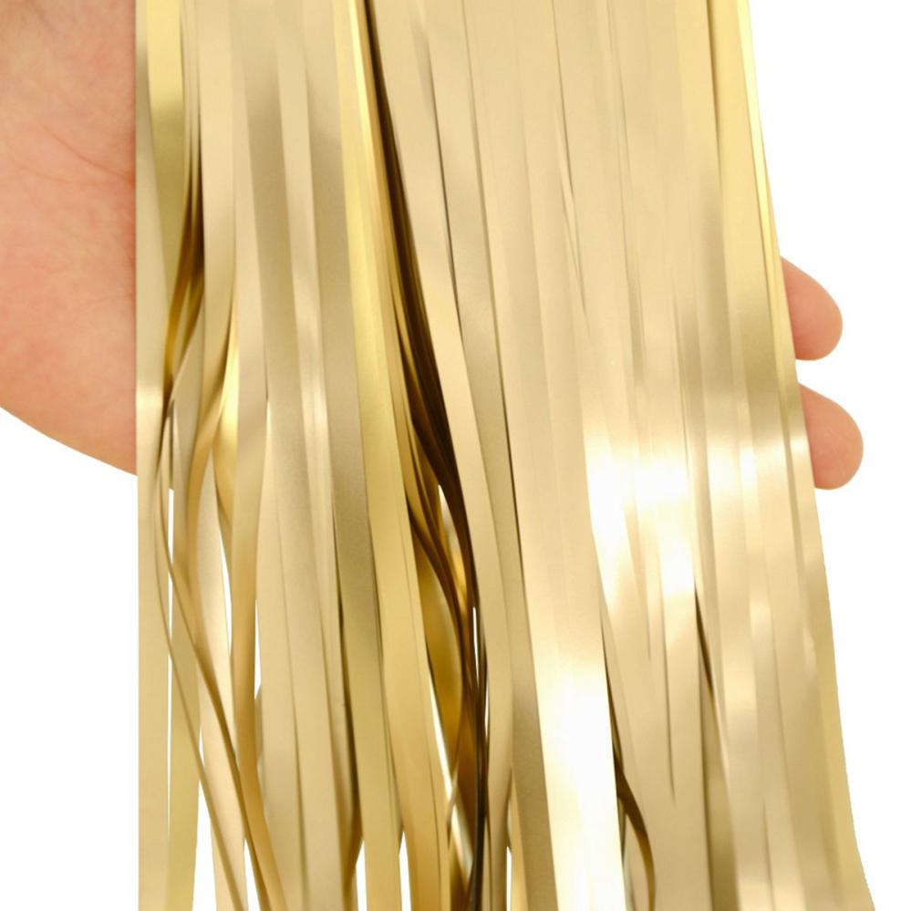 Dörrdraperi Matt Ljusguld omfattar ett dörrdraperi med långa och tunna remsor i matt ljusguld.