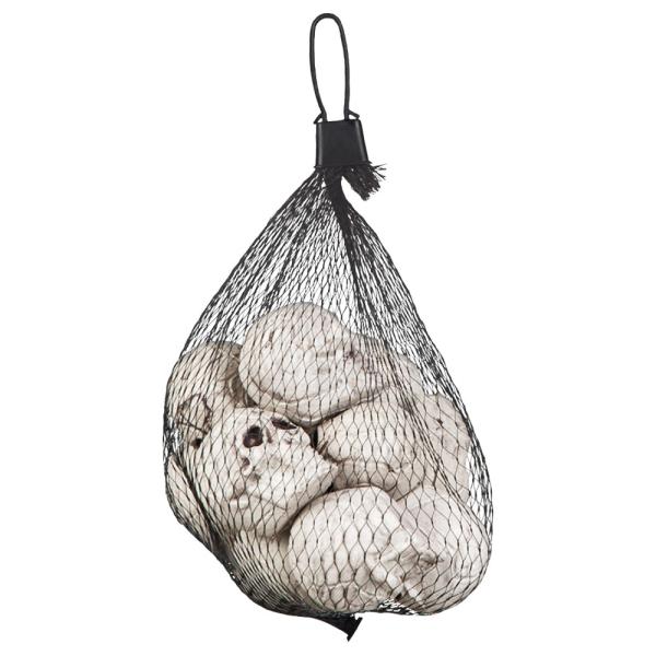 Döskallar i Nät innehåller 12 stycken små plast-döskallar som mäter ca 4 x 3 cm. Passande döskallar för halloweendekorationer och liknande.