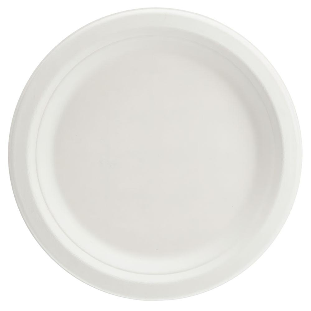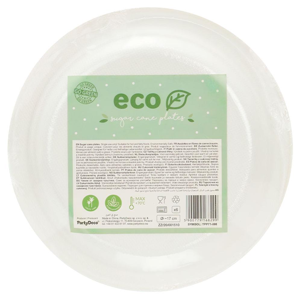 Ekologiska Engångsassietter Rund omfattar miljövänliga och komposterbara runda engångassietter i vitt tillverkade av sockerrör. Assietterna tål varm och fet mat och kan vara i mikro upp till fem minuter. Säljs i 6-pack.