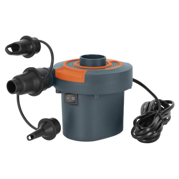 Elektrisk Luftpump Sidewinder omfattar en elektrisk luftpump till uppblåsning av exempelvis gummibåtar och luftmadrasser. Pumpen har tre stycken ventiladaptrar vilket gör att den passar till olika uppblåsningsventiler. Pumpen har också tömningsfunktion. GS och CE-godkänd. Luftflödet är ca 680 liter/minut och maxtrycket 390 mmH2O. 220-240 Volt.