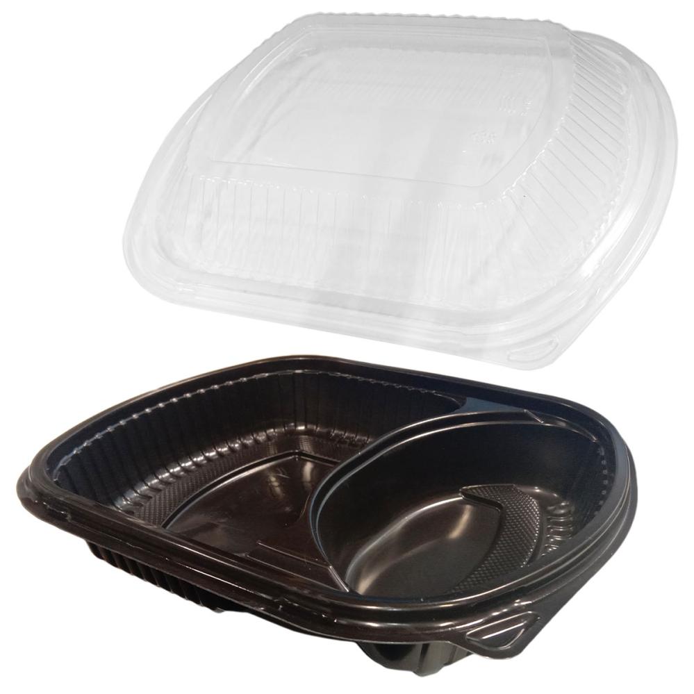 Engångslåda med Lock & 2 Fack 50-pack innehåller femtio svarta engångslådor med transparent lock och två fack.