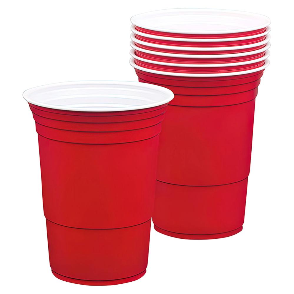 Dessa röda muggar brukar oftast kallas för solo cups och används ofta till beer pong, så har du lite för få muggar till ditt beer pong set så kan du fylla på det med dessa plastmuggar! Visste du att du även kan mäta upp olika typer av dricka med hjälp av skårorna i muggen, vilket hjälper om du ska shota eller skapa en drink! Det finns även fler lekar än beer pong, som till exempel flip cup, som kan göras med dessa muggar!