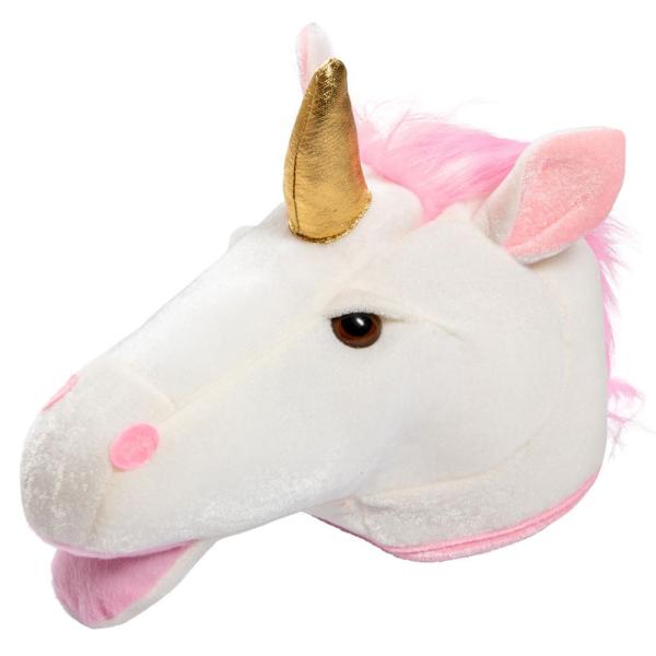Enhörningshatt omfattar en fin maskeradmask föreställandes en vit enhörning med ett gyllene horn och en vacker rosa man.