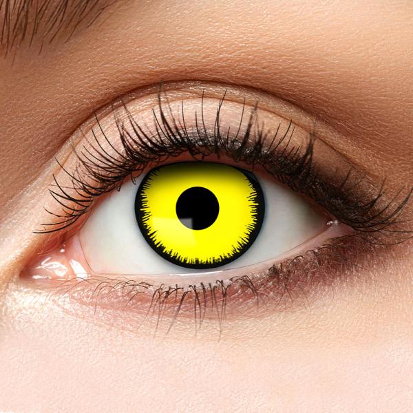 Tveksam över hur du ska få till den ultimata halloweenlooken? Använd dig av dessa färgade crazy linser i gult och skapa omedelbart ett riktigt kusligt utseende! Läskigt gula halloweenlinser med svarta konturer som utan tvekan kommer att göra dig redo för skräckfest. Matcha dem med en passande sminkning och dräkt för en komplett och riktigt rysande utstyrsel!