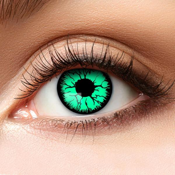 Färgade crazy linser kan förbättra vilken halloweensminkning som helst så tveka inte på att komplettera just din sminkning med läskiga halloweenlinser som dessa! Kusligt gröna linser med svarta konturer som ger ögonen ett superläskigt utseende. De blir en effektfull detalj och ger din look lite extra kuslighet, perfekt när du vill skrämmas riktigt ordentligt!