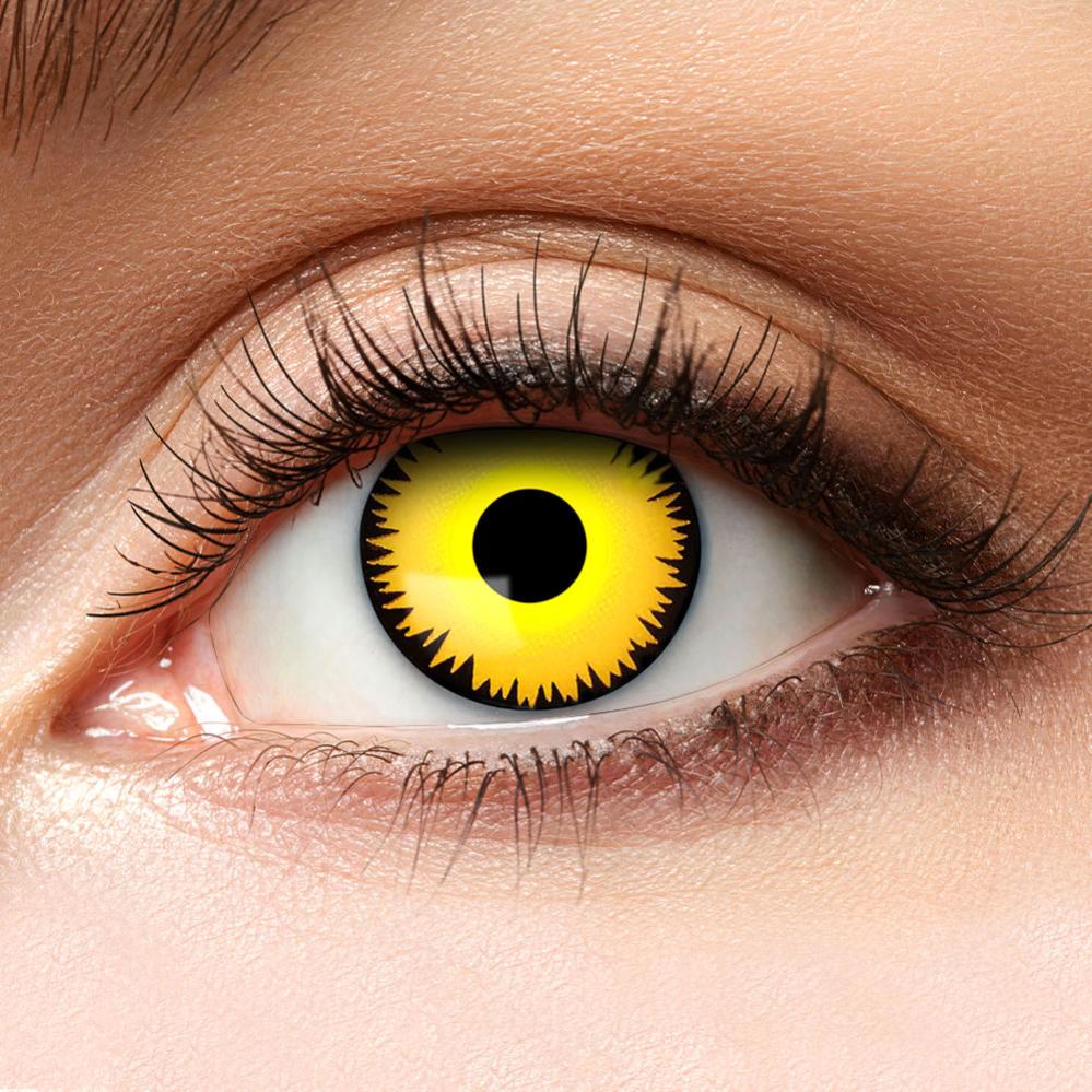 Färgade Crazy Linser Yellow Wolf omfattar ett par färgade linser i gult med svarta detaljer. Linserna passar vuxna och kan användas i upp till 3 månader.
