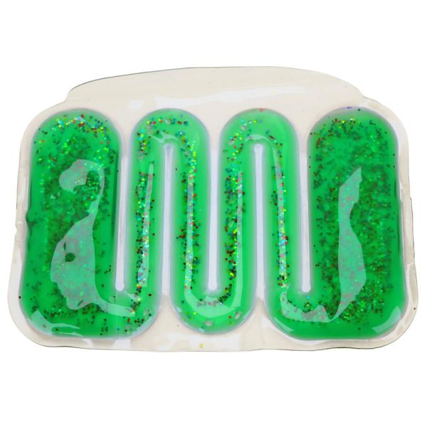 Fidget Squeeze Tube omfattar en fidget leksak formad som ett slingrande tub med vätska och glitter. Kläm på de två ändarna så att glittret åker fram och tillbaka.