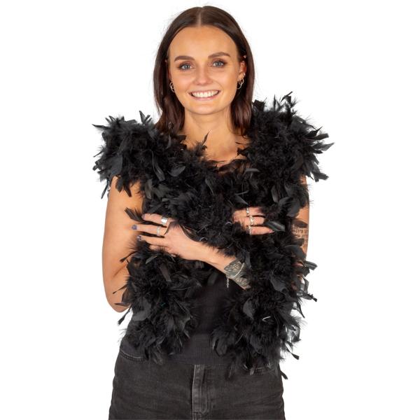 Fjäderboa Svart 80 g 180 cm är en boa med svarta fjädrar.