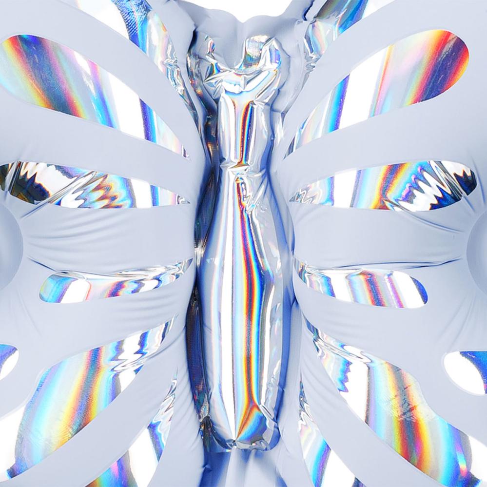 Fjäril Folieballong 3-pack består av tre fjärilsformade folieballonger i blå, mintgrön och rosa med iriserande färg. Ballongerna kan fyllas med luft med det medföljande sugröret.
