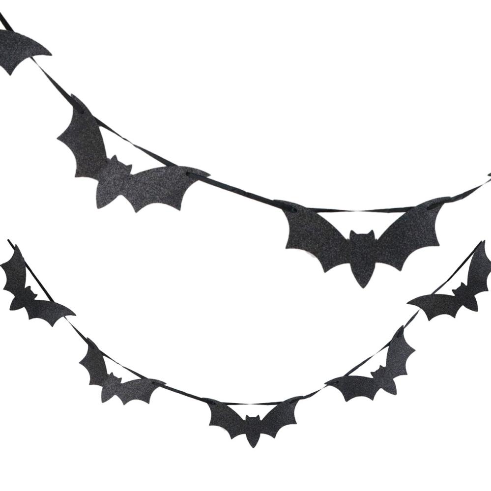Skapa rätt stämning under Halloween med denna glittriga fladdermusgirlang. Denna dekoration är en stämningshöjare på varje halloweenfest och ett perfekt val bland dina halloweenkalastillbehör för att sätta tonen för kvällen.
