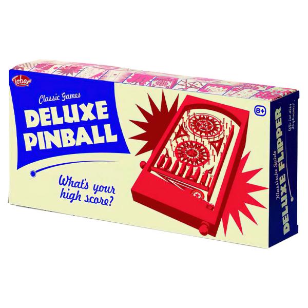Flipperspel Deluxe omfattar ett deluxe flipperspel med små metallkulor. Spelet är tillverkat av trä och är ca 33,5 cm långt och 16,5 cm brett.