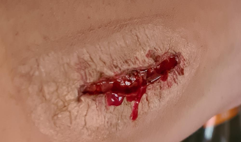 Flytande latex används för att få till läskiga hudimitationer och andra realistiska köttsår.