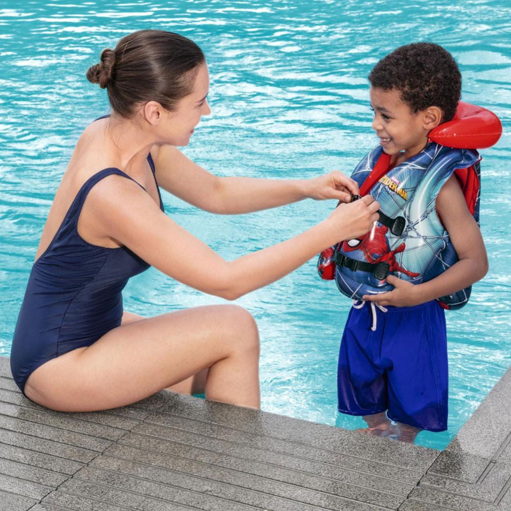 Med Spiderman flytväst blir simskolan ännu roligare, perfekt för alla barn som gillar Spindelmannen och att bada. Med denna barnflyväst kan ditt barn lära sig simma på ett säkert sätt. Denna flytväst passar barn från 2 till 6 år med en vikt på 18 till 30 kg.