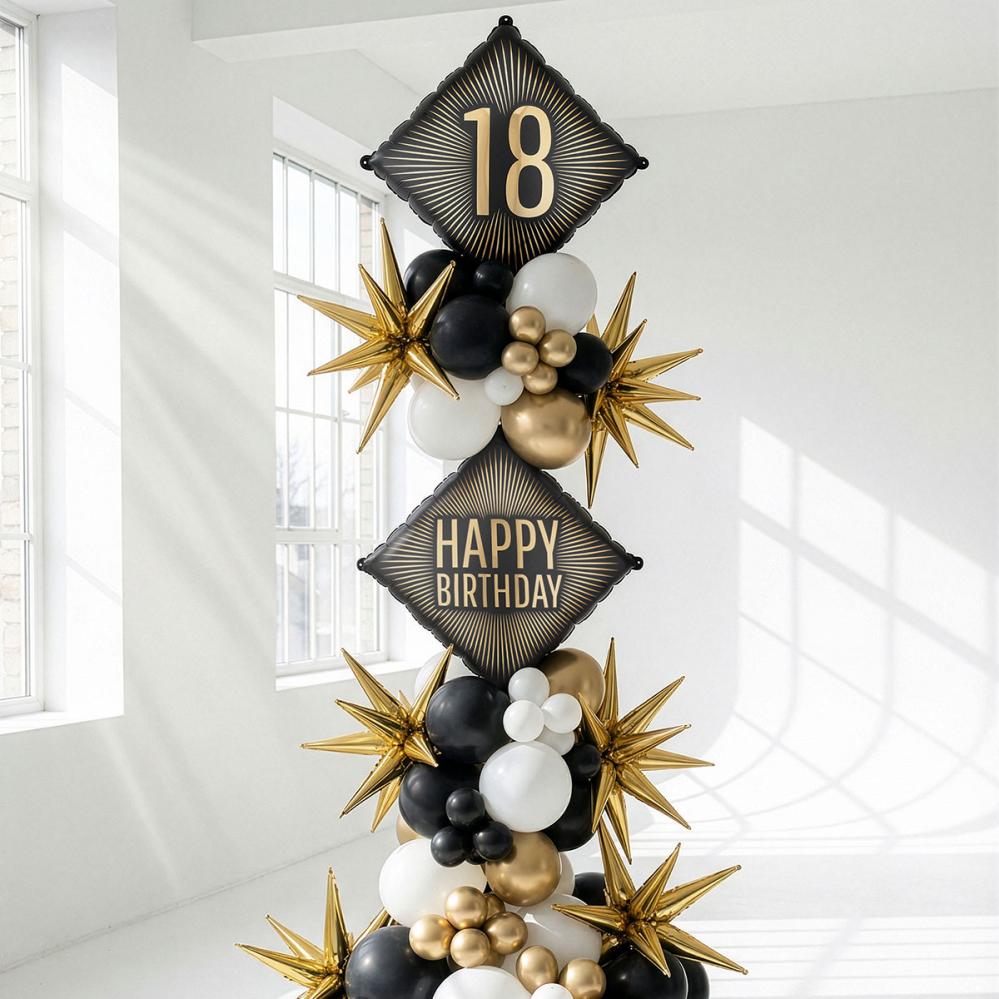 En födelsedagsballong sätter genast tonen, och som folieballong när 18 år firas blir den ett kul inslag för dig som vill ha en ballong till födelsedag med extra stjärnglans. Till en 18 års fest är den en perfekt dekoration i svart och guld.
