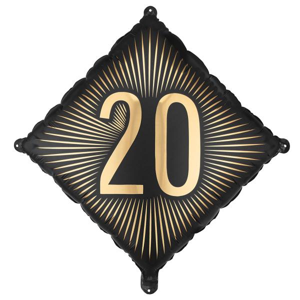 Som dekoration på en 20 års fest i svart och guld blir denna folieballong en rolig födelsedagsballong när 20 år firas, och på en födelsedag gör en sådan ballong hela rummet gladare.