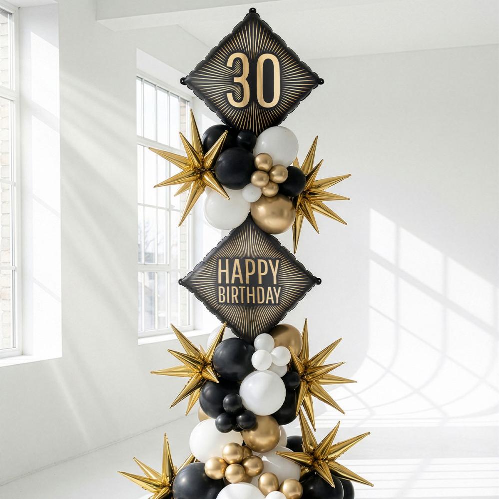 Till en 30 års fest är en dekoration i svart och guld något som stjäl showen. Denna födelsedagsballong är en folieballong för den som fyller 30 år, och på en födelsedag blir ballongen genast festens höjdpunkt.